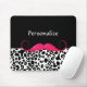 Un mousepad blanco y negro de moda del estampado leopardo con un bigote lindo de las rosas fuertes. Haga una declaración de moda añadiendo su nombre a esta estera moderna del estampado de animales. Perfeccione para el chica femenino adolescente.