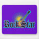 Texto "Estrella de roca" diseñado en negro, morado y azul con guitarra y ráfaga de sol.