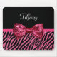 Su adolescente sentirá sumergido en lujo femenino con este mousepad elegante del estampado de zebra del purpurina del rosa y del negro del diseñador con una cinta de la chispa de la lentejuela atada en un arco de lujo. Personalice este glitz y diseño atractivo de la moda del estampado de animales añadiendo su nombre. Imagen impresa del plano, purpurina o cinta no real.