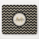 Los galones negros bonitos puestos en contraste con los falsos galones del purpurina del oro de plata son el foco en este cojín de ratón personalizado. En el centro es su monograma en oro en una bandera más ligera del círculo alineada en negro. Añada su nombre impuesto en negro sobre el monograma, y usted tiene una imagen única, elegante, y atractiva. nota del *Please - la imagen se imprime, y no contiene ningún purpurina real o substance.* metálico