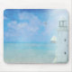Faro blanco con gaviotas y velero en efecto acuarela.