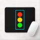 Representación gráfica audaz de la luz indicadora de control de tráfico, en rojo, amarillo y verde, con borde azul claro, sobre fondo negro.