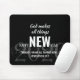 Elegante MOUSE PAD negro para el Año Nuevo 2020 con el mensaje DIOS HACE TODAS LAS COSAS NUEVAS con FELIZ AÑO NUEVO en tipografía blanca. El 2020 está escrito en escritura gris oscuro, con el versículo de la Biblia de personalizable de la Apocalipsis. Este es un regalo ideal de Año Nuevo para colegas de trabajo (o empleados), grupos de hombres, etc. y es parte de la colección de AÑOS NUEVOS de diseños bereanos.