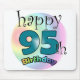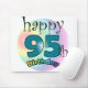 Gelukkige 95ste verjaardag muismat Leuk als cadeau voor iemand die vijfennegentig es geworden. Regenboog kleuren. 95 está en de blauwe kleur.