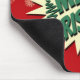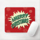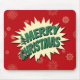Feliz ilustracion al estilo del cómic navideño con árbol de Navidad y decoración de copos de nieve sobre fondo rojo