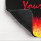 Esta almohadilla del ratón tiene un diseño de llamas de barras calientes rojas igual que los coches de barras calientes clásicos o las llamas de carreras de autos musculares. El diseño es más grande o más pequeño, pero hay que desplazarlo un poco. Personaliza esto con tu propio mensaje o borra las letras para tener un diseño de solo llamas.