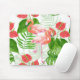 Diseño acuático con flores y pájaros flamencos, monstera y hojas de palma.