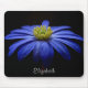 Alfombrilla De Ratón Flor azul de margarita sobre negro personalizado