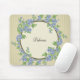 Agradable y decorativa almohadilla de ratón con un fondo beige marrón, rayas y una corona de flores azules. Personalice con el nombre o las iniciales de su destinatario. El diseño de estilo victoriano.