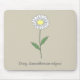 Una almohadilla de ratón marrón claro con un ilustracion de flores de margarita botánica en colores pastel (Leucanthemum vulgare) y un texto de personalizable en la parte inferior: una buena idea para un chica que ama las flores. La margarita es la flor de nacimiento de abril y es un significado simbólico de bondad, pureza, inocencia, alegría y alegría.