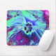 Alfombrilla De Ratón Flor de hibiscus verde y azul psicodélico retro
