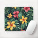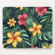 Flor Tropical Hibiscus Seamless Pattern Mouse Mat. Patrón de flores tropicales sin soldadura con hibisco rojo y amarillo con fondo de hojas tropicales,