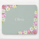 Esta elegante alfombrilla de ratón floral presenta suaves tulipanes rosados y narcisos blancos dispuestos en un diseño clásico de esquina de jardín. Puesta sobre un fondo verde suave y personalizada con tu nombre, aporta un encanto botánico refinado a tu escritorio.