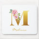 Alfombrilla De Ratón Floral Monograma Faux Gold Nombre inicial Personal
