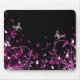 Hojas y impresión floral delicadas del rosa con las mariposas blancas en un fondo negro. Añada el texto para personalizar.