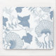 Alfombrilla De Ratón Flores azules japonesas de fondo blanco