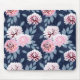 Alfombrilla De Ratón Flores blancas y rosas sobre azul oscuro.