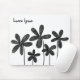 Una almohadilla de ratón con una atractiva pluma en blanco y negro y un dibujo de flores de estilo tinta. Listo para ser personalizado con su nombre, o también puede borrar el texto del nombre si lo prefiere.