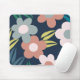 Resumen de flores primaverales coloridas y hojas decoración en tonos rosa, azul, verde y amarillo sobre fondo azul marino