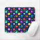 Flores coloridas y puntos sin fisuras sobre fondo azul marino