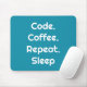 Perfect for programmers and code lovers 💻 this sleek mouse pad features "Code. Coffee. Repeat. Sleep" in white on a vibrant Ocean Blue background