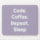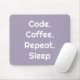 Perfect for programmers and code lovers 💻 this sleek mouse pad features "Code. Coffee. Repeat. Sleep" in white on a soft Lavender Gray background