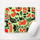 Un cojín de ratón con un diseño abstracto inusual compuso de formas surrealistas extrañas en rojo y negro. Inspirado por diseño moderno retro.