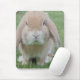 Serio y lindo conejito marrón fotografiado sentado sobre hierba verde.
