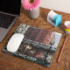 Almohadilla de ratón estándar para tu estación de trabajo de computadora que muestra una imagen fotográfica del centro de Chicago y su famoso tren en bucle elevado. ¡Hace un gran regalo de recuerdo de viaje!