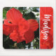 Esta almohadilla de ratón muestra una foto de una flor de doble hibisco naranja brillante y un hermoso guión elegante para personalizar el nombre.