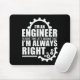 Alfombrilla De Ratón Funny I'm An Engineer Always Right