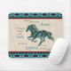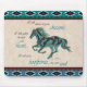 Brilla Tu Oficina Con Esta Única "Una Especie" Inspiradora Almohadilla De Ratón De Caballo. Se presenta una silueta de caballos galopante turquesa en un entorno de fondo muy agradable, cerca de un borde suroeste de Turquesa, Blanco y Arroz.... y las inspiradoras palabras "Bailaré en tus sueños" ~ Voy a reventar a través de tu corazón" ~ ¡Pondré Huellas en tu alma"! Este es un Diseño de Arte Gráfico Original creado por el artista Kerry Miller.
