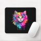 Alfombrilla De Ratón Gato arcoiris A acuarela Pintura Flores coloridas