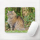Gato de Angora (Felis catus) sentado sobre la hierba entre la hiedra