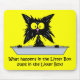 " Qué sucede en la caja de arena, permanece en el dibujo animado del gato negro del litterbox" con actitud en litterbox.