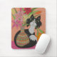 Alfombrilla De Ratón Gato de Tuxedo con lirios
