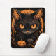 Alfombrilla De Ratón Gato negro de Halloween con calabazas y luna