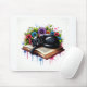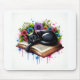 Alfombrilla De Ratón Gato negro durmiendo en un libro con flores