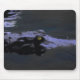 Dramático arte fotográfico del lagarto de noche en agua oscura con ojo penetrante amarillo y borde negro decorativo. Por Dwight Bennett de Natureworld Art.