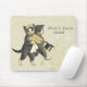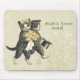 El tema de los gatos bodas bonitos tiene áreas de texto de personalizable. El gato de la novia sostiene un ramo de boda de rosa blanca y el gato de Groom se tambalea a su lado con su sombrero de top negro.