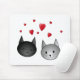 Alfombrilla De Ratón Gatos negros y grises lindos, con los corazones