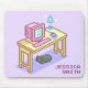 Este bonito diseño presenta imágenes en píxeles de un escritorio y de un ordenador. En el monitor de la computadora hay una cara feliz y también un gato sentado debajo del escritorio. He usado un esquema de colores rosa y amarillo pastel, y un diseño isométrico, para darle al arte una estética de juegos de computadora de los 90. En la esquina inferior puede agregar su nombre. 💻 Obra de JessicaAmber. 💻 Para más arte en píxeles kawaii, visita mi tienda Zazzle zazzle.com/jessicaamberartist 💻 Para pedidos personalizados, envíame un mensaje a Zazzle
