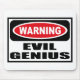 GENIO MALVADO amonestador Mousepad que usted puede modificar para requisitos particulares en www.WarningSignShirts.com y que ofrece una señal de peligro y un GENIO rojos y negros del MAL en letras negras intrépidas de advertir el mundo. Usted puede también modificar su propia señal de peligro para requisitos particulares Mousepad con el texto que usted quiere.