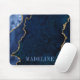 Moderna y elegante almohadilla de ratón Geode Blue and Gold Marble Agate Geode Color de agua azul y oro personalizada con tu nombre.