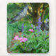 Geranios rosados y púrpuras y plantas exhibidos en una calidad Mousepad.