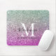 Girly Aqua Blue Pink Ombre Purpurina Monograma Nombre Mouse Pad