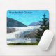 Vistas al glaciar de Mendenhall, a las afueras de Juneau, Alaska. Los Icebergs flotan en el lago de agua de deshielo en la cara del glaciar.