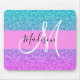 El purpurina de la sirena giratoria y glam púrpura, lila, aqua y turquesa brilla el nombre del monograma gradiente y la almohadilla inicial del ratón. Su nombre personalizado y su monograma están escritos en un guión elegante con letras a mano con un fondo rosado. ¡Un regalo perfecto de cumpleaños o Navidades!