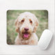 Imagen de un goldendoodle sonriendo. Perro de diseño, recuperador de oro y caniche.