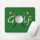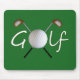Golf Mousepad. Mousepad verde con clubes de golf cruzados con una pelota de golf blanca en el centro. Se pueden agregar texto y/o imágenes y también se puede personalizar el color del teclado del ratón.